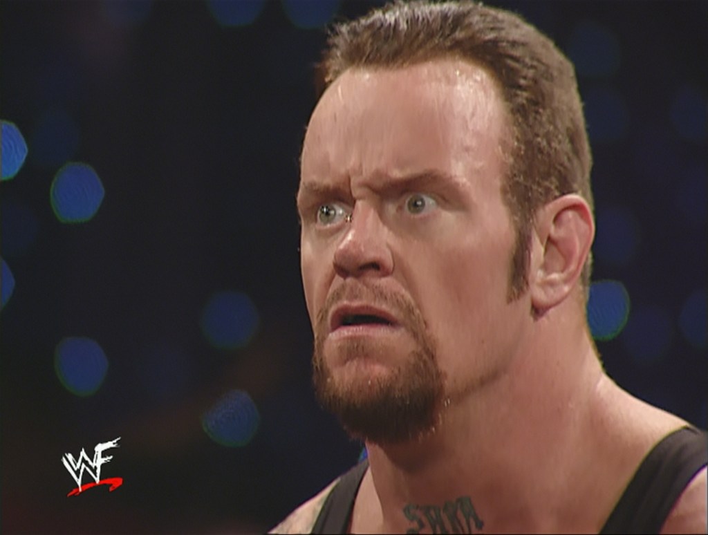 That isn’t really a funny moment per se, but what made me laugh is Taker’s shocked face. It’s so funny that I could imagine him mouthing, βWhat the hell just happened?β It became my go-to reaction image when I’m stunned, speechless, or both.